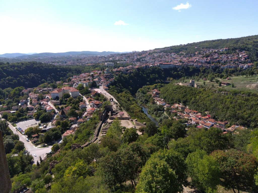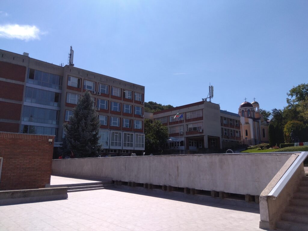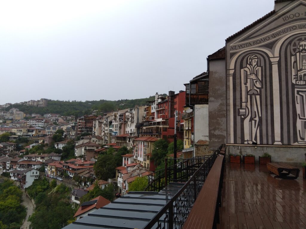 9月12日(月)にソフィア空港から入国し、13日(火)にヴェリコ・タルノヴォに到着した。16年前(2007年)に一度訪れてはいるものの、全く異なる新鮮さを感じながらのスタートとなる。バスが発着するアフトガーラ・ユグでK先生の出迎えを受ける。今日からこの街が僕の街になると思いながらバスに揺られる。ヴェリコ・タルノヴォはバルカン山脈の麓に位置する。歴史は古く第2ブルガリア帝国の首都でもあった。現在は人口7万人の地方都市。週末には多くの観光客が訪れる。蛇行するヤントラ川が深く削り取った斜面に家々が階段状に建てられている。それが西陽を受けて赤く染まったときの眺めはひときわ美しい。大学は市内東部のスヴェタ・ゴラの丘の中ほどに建つ。大学からの眺めも美しく、谷向こうのツァレベツの丘に教会と長く続く城壁が見える。これほど眺めのいい大学を私は知らない。けれど、その眺めのすばらしさはこの大学の魅力の一部でしかないのであろう。