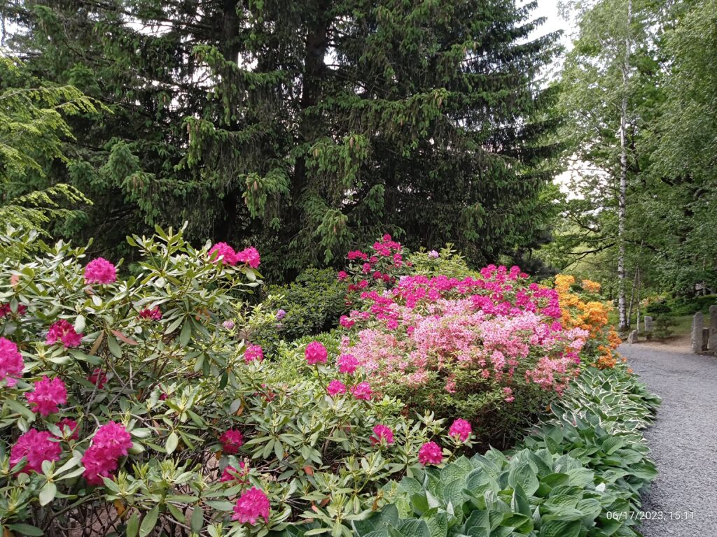 イレニアグーラから10キロ程のチェコとの国境に近いシルビアと言う町に、起伏のある地形を生かした『ジャパニーズ・ガーデン』が個人の熱意で開設されている。岩や石を配置した散策路には、高山植物であるシャクナゲや色とりどりのさつきがふんだんに植え込まれて見事な綾をなしている。イレニアグーラの学長に案内してもらったのが6月下司だが、清涼な空気と相まってシャクナゲが生き生きしていた。また山がちな起伏のある地形から覗き見える景色は 平原に暮らすポーランド人にとって新鮮なようで、学長が「展望が開けて素晴らしい」と言っていたが、箱根の眺望を見慣れた自分にも、妙に懐かしく日本らしさを感じさせる庭園だ。もちろん築山から流れる滝があり池がある。苔も十分管理されている。