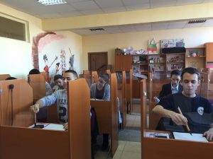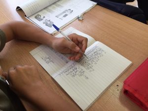 月に2回ある日本の文化ふれあいでは、高等部は『書道』。 一クラスを半々にして日本語授業と書道を次週交替にして行う事にした。 ノートもきれいに書いています。