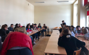 2日間とも、最初には日本人学生、ポーランド人学生ともにプレゼンテーションを披露してくれました。日本人学生は、大阪・高校・日本について。ポーランド人学生は、ウッジとポーランドについて話してくれました。どちらのプレゼンテーションともしっかりと準備されており、実に質の高いプレゼンテーションでした。時間があまり足りませんでしたが、質問時間などを設けられたらもっと深みのある発表になったと思います。