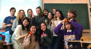 折り紙は、日本人学生がポーランド人学生に教えてあげるという活動形態をとりました。初めて折り紙を英語で教える学生も多く、初めは戸惑っていましたが、とても楽しんで意欲的に取り組んでくれました。