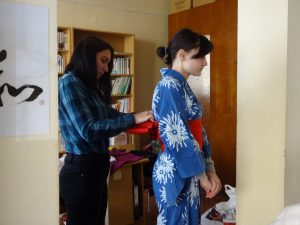 浴衣の着付け練習 書道の練習