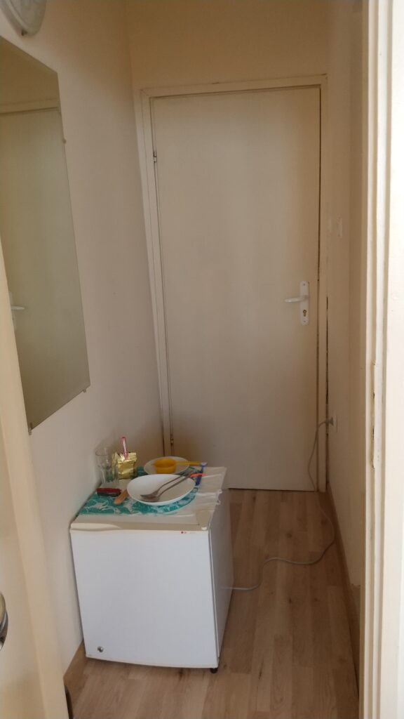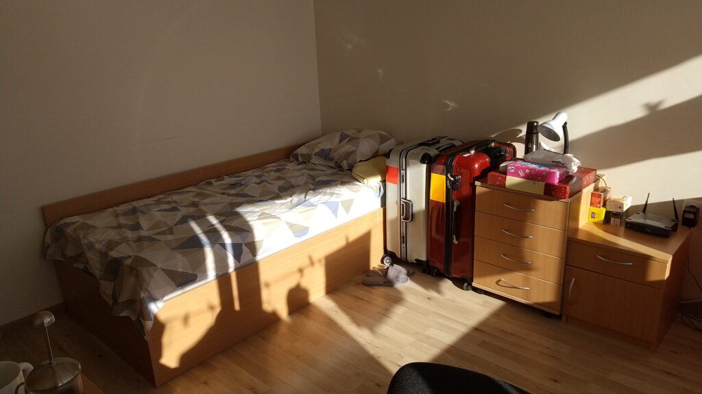 私が滞在しているのは、大学内にある寮の一室です。学生も教員もこのような部屋のようです。