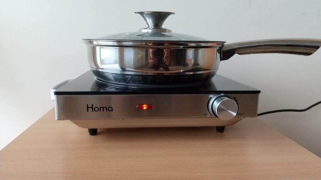 また、朝と夕方の食事は近くのスーパーで買ってきたものを食べています。11月末に、セラミックプレートの電熱器と鍋を買ってきたので、鍋物などができるようになりました。