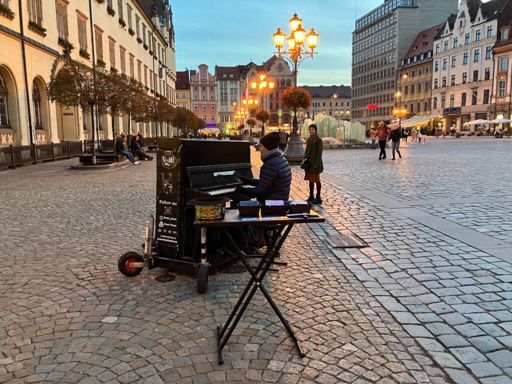 街の中心部には人が集まり、カフェやレストランでゆったりと歓談しています。オルガンなどの楽器を弾いている人もよく見かけます。音楽と美しいヴロツワフの夜のコンビネーションは幻想的。