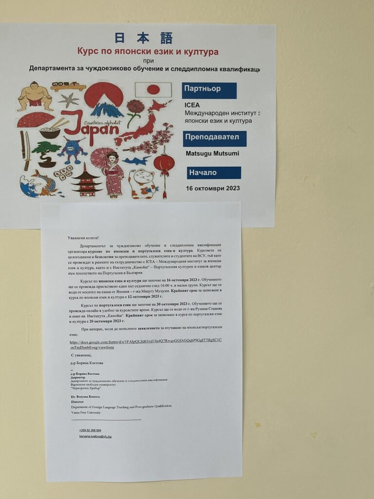 写真1(大学内での日本語クラスに関する宣伝ポスター)