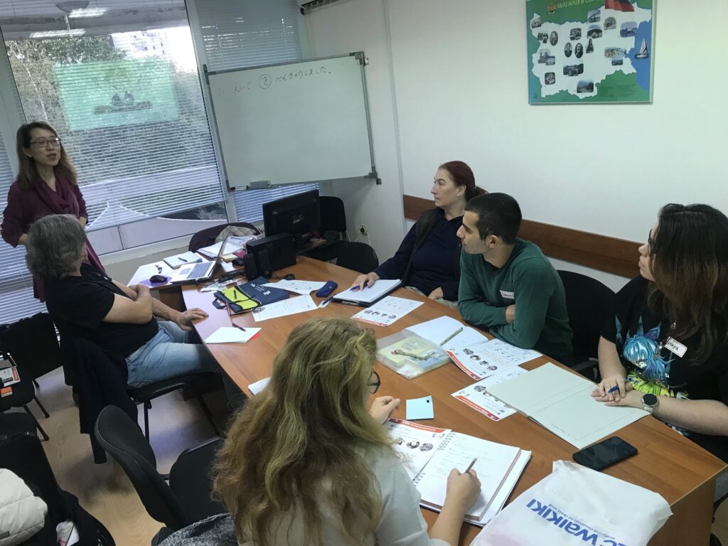 私はなるべく教科書だけでなく、会話をしてもらうよう、いろんな場面の会話も取り入れながら、行っています。また日本文化にも興味がある人も多いので、アニメの日本語や日本の行事についても話しています。先日は盆踊りを紹介しながら、炭坑節を練習しました。はっぴを着て踊ってもらい、結構皆楽しそうに踊っていました。