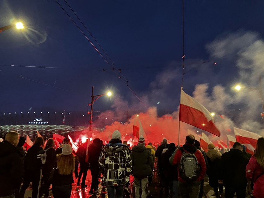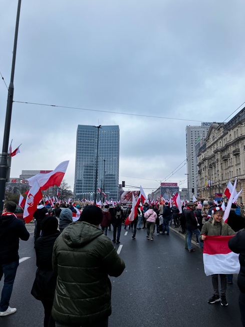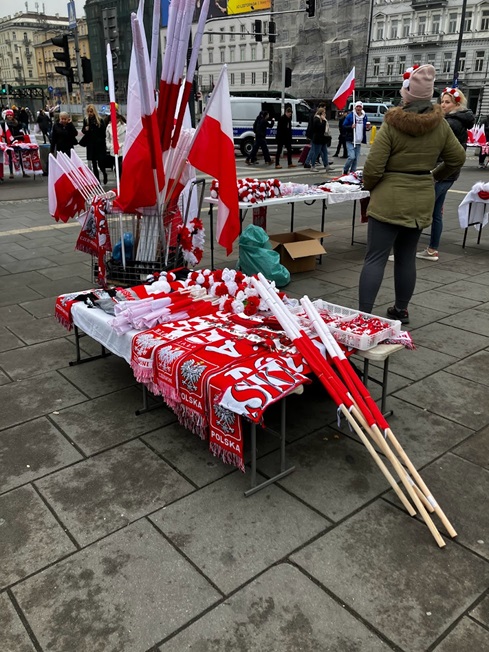 11月11日はポーランドの独立記念日だったため、ワルシャワで開催された独立記念の行進に参加してきました。ワルシャワ中央駅に降りたらすぐにポーランドの国旗などが売られた出店が立ち並び、たくさんの人が国旗を掲げていました。行進には若者から家族連れ、お年寄りまで様々な人々が参加していました。参加者からは国家を歌って独立を祝い、一致団結して国を守っていこうとする力強い意志を感じました。