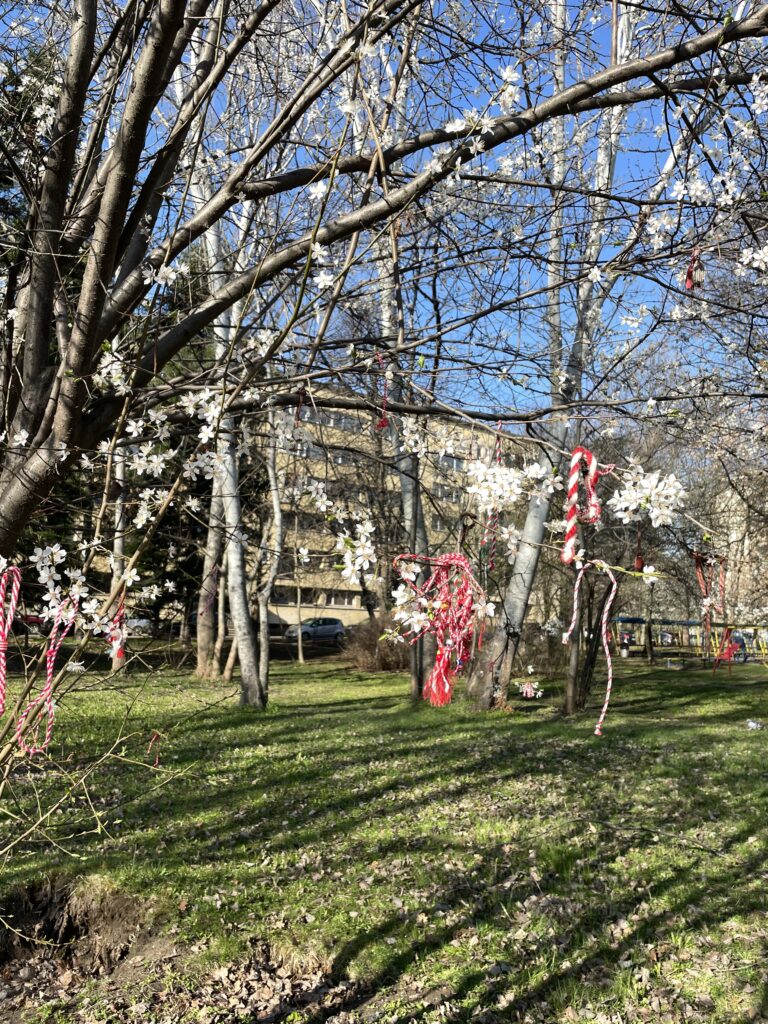 3月1日は「ババマルタ」と呼ばれる春の訪れを祝い、健康と幸福を願う伝統的な日。赤と白の糸で作ったミサンガのような飾り「マルテニツァ」を交換し合う。この日は休日ではなく、授業は通常通り行われていたが、学生同士も教員同士も「マルテニツァ」を交換し合っていて、ブルガリアの方にとっては特別な日のようだ。