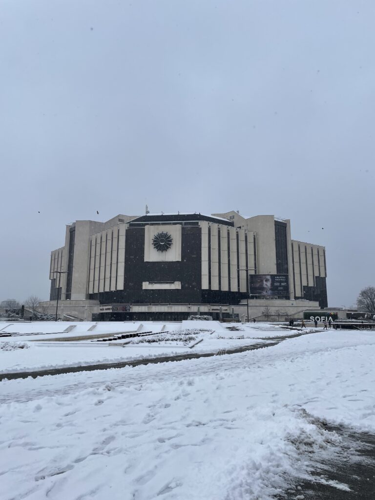 2月後半になると暖かくなると思っていたのですが、2/17(月)の朝、外は雪で真っ白でした。でも、部屋の中はポカポカです。街では、みんな厚手のコートやダウンジャケットを着て、毛糸の帽子やフードをかぶったりしています。ブルガリア人は、おしゃれで着こなしも上手な感じがします。ソフィアの人たちは、少々の雨や雪では傘をさしません。平気で外を歩いています。