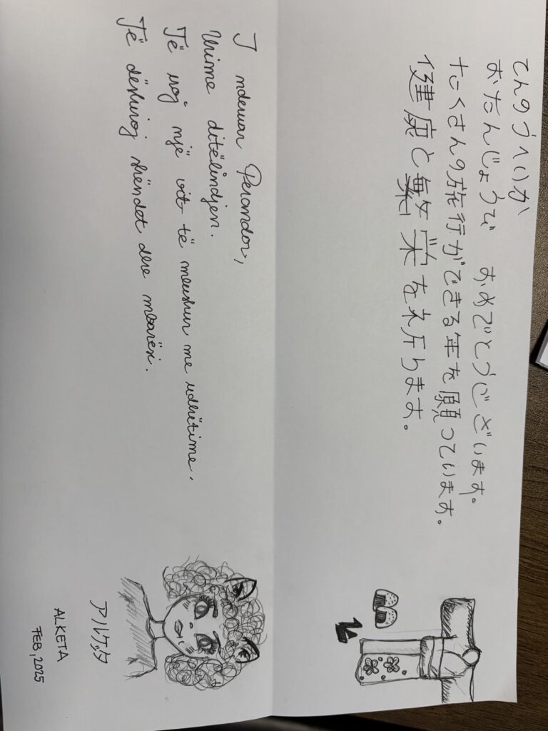 大統領も出席され、久しぶりに日本食等御馳走で楽しみました。 学生からもお祝いの作文が寄せられましたので記載します。