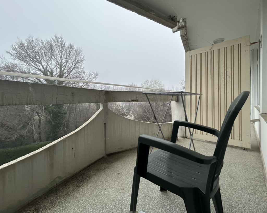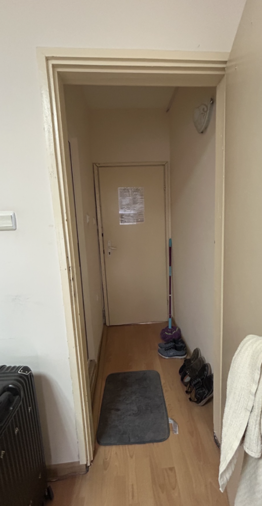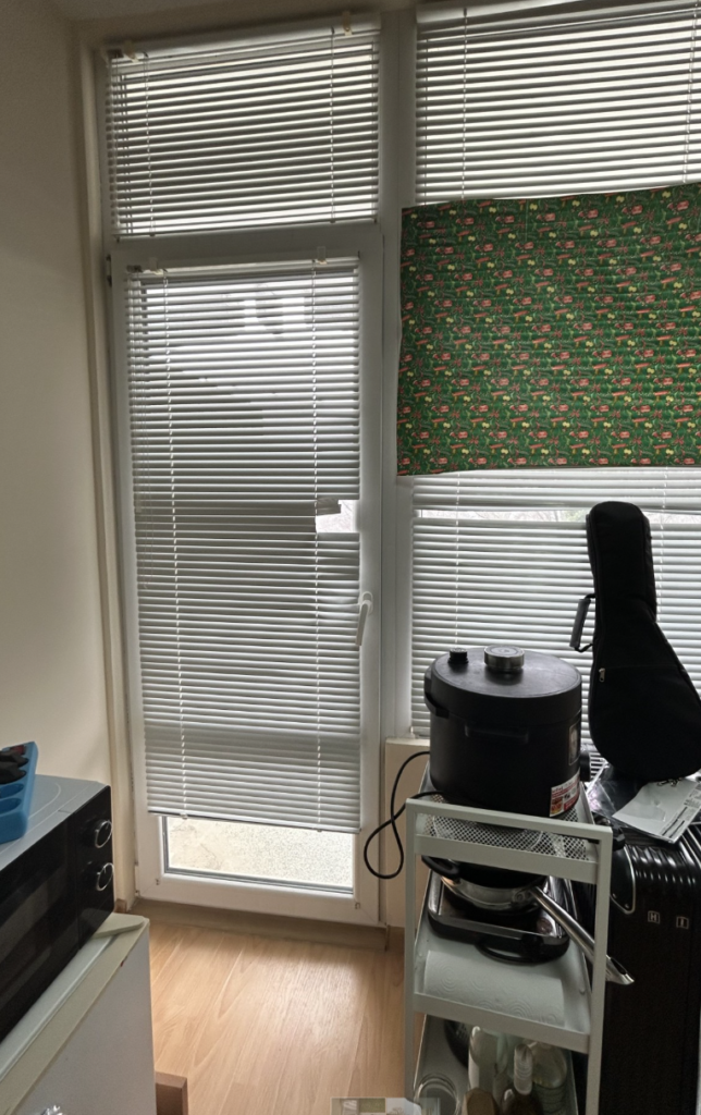 ベランダもあります。下記の写真のドアから出るとベランダがあり椅子が置いてあります。タバコも吸えるようです。外でも洗濯物を干すこともできます。私の部屋からは、冬は木に葉がついていなかったので、少し黒海が見えましたが、夏場は見えません。