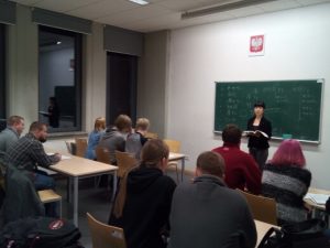 英語専攻の学生のための選択コースとして日本語の授業が開校されており、日本語コースができてから今年で4年目ということで、今年は初めて4学年揃いました。1年生は3クラス(約35名×2、12名×1)、3年生は1クラス(約22名)、4年生は(約22名)で、私はこれらのクラスで週8コマ授業しています。授業は、朝は8:00から夜は21:30まであり、1日に4コマ授業する先生もいますが私は最大3コマで月火木と3日出勤しています。今年度(前期)はポーランド人講師2名と日本人講師3名で日本語コースを担当です。テキストは1~2年生は『みんなの日本語』、2~4年生は『ニューアプロ―チ』を使用。日本語コースも今年度からはより検定試験を意識したカリキュラムにということで、4技能のバランスを目指し文法・会話・書記に加え聴解や作文、読解への比重も大きくなりました。文法はポーランド人講師中心、それ以外は日本人です。大学なので当然ですが、教室も講義室スタイルですので会話の授業をするような場合は、最初はやはり少し戸惑うことはあるかもしれませんが、学生の方はそのようなスタイルに慣れているようですので、そこはあまり慌てず焦らずで、しっかり言葉を選んで伝える授業を目指すよう努力しているところです。逆に、絵カードやその他視覚教材、オンライン教材などは今のところほとんど利用しておりませんが、学生の傾向やニーズ、またこちら側の考える効果的指導というものを総合的に考えて漸次改善していきたいと考えています。