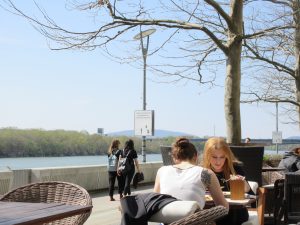 日中は半袖姿で充分過ごせるばかりか、まぶし過ぎる太陽の光に サングラスがないと外出できないほどです。ほんの数週間前はまだ寒かったのが嘘のよう。ひっそりと冷たい冬を耐えてきた街が一気に活気を取り戻し、日増しに暖かく(暑く)なる太陽の恵みと共に 華やぎと輝きを増してきています。観光客もどんどん増え、人々の幸せな笑い声や笑顔が溢れかえる街を散策しているだけでとても幸せな気持ちになります。 写真は ドナウ川畔のオープンテラスで食事を楽しむ人々。川沿いには深夜まで散策やサイクリング、スケートボードを楽しむ人が絶えません。