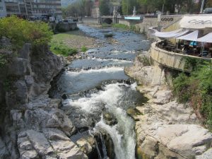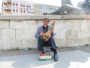 写真を添付します。ガブロヴォで写しました。一枚は町を流れるヤントラ川。山から近いのできれいな水です。二枚目は街角で楽器を演奏していたアルバニア人。