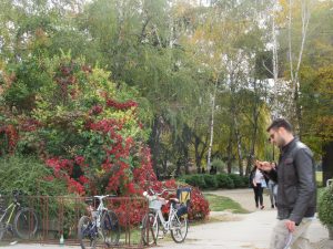 写真は昨日大学で取りました。言語学部の建物の写真と、大学構内の紅葉の様子です。