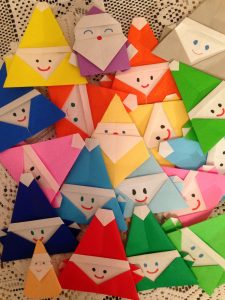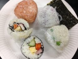 最初、パワーポイントでや其々の作り方を説明しました。おにぎりを予めラップで包み実際に握り方を体験。準備するのは大変でしたが好評でした。
