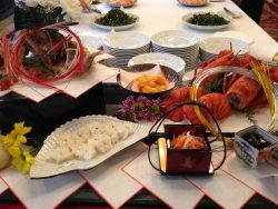 書道の心得、歴史、とめ、はね、はらい等を実際に書きながら説明しました。自分の作品で「楷書、行書、草書」の違いを区別する方法も説明しました。参加者全員分のお手本を前以って用意しました。要望に答え、皆の前で様々な漢字、四字熟語、ひらがなの言葉や各自の名前をカタカナで書いて差し上げました。各自、お手本に関係なく楽しく、自由に芸術的な書初めを完成しました。